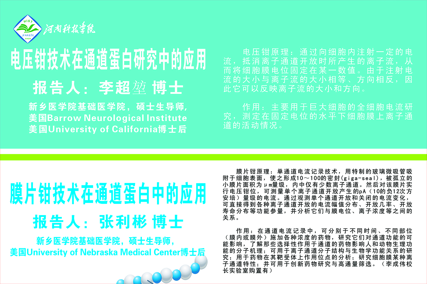 学术报告:电压钳及膜片钳技术在通道蛋白研究中的应用