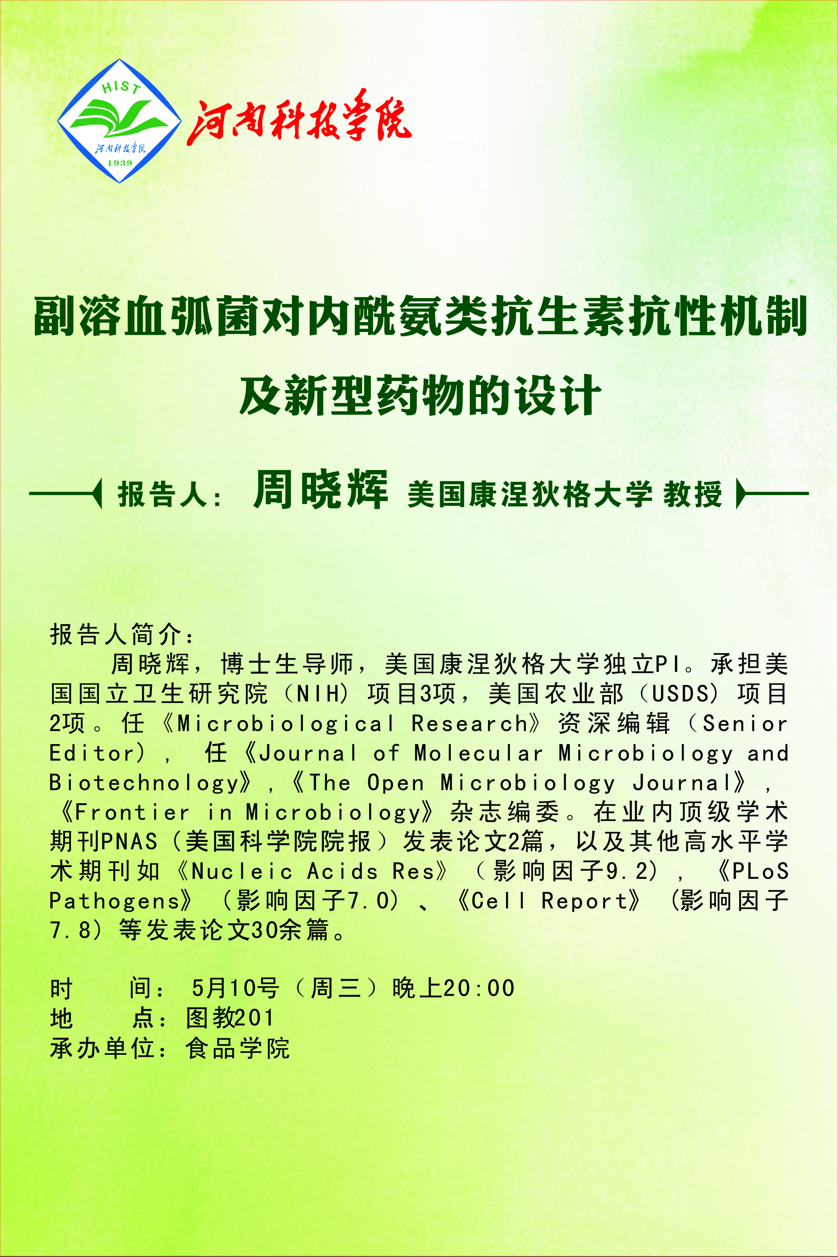 学术报告:副溶血弧菌对内酰氨类抗生素抗性机制及新型药物的设计