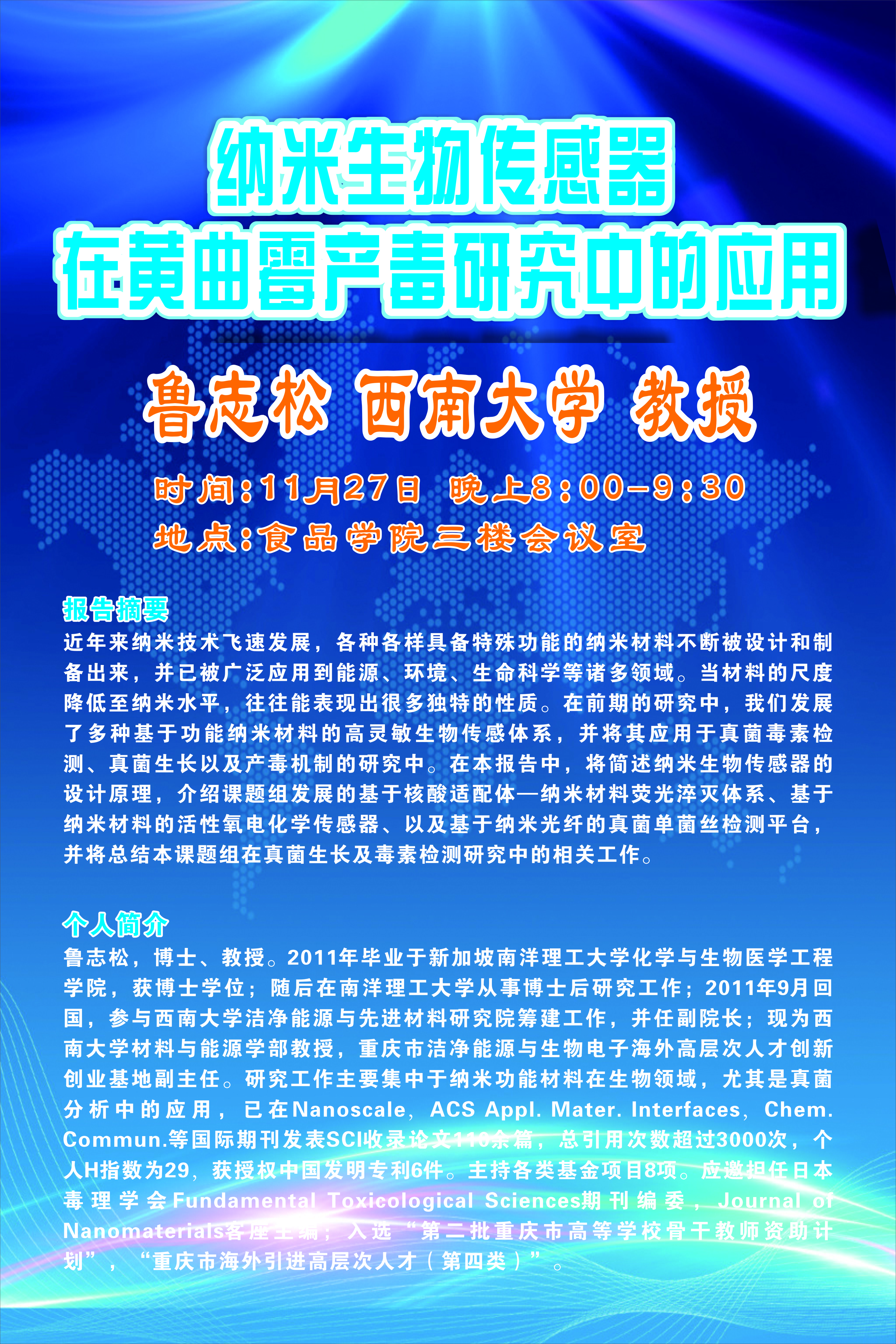 学术报告:纳米生物传感器在黄曲霉产毒研究中的应用