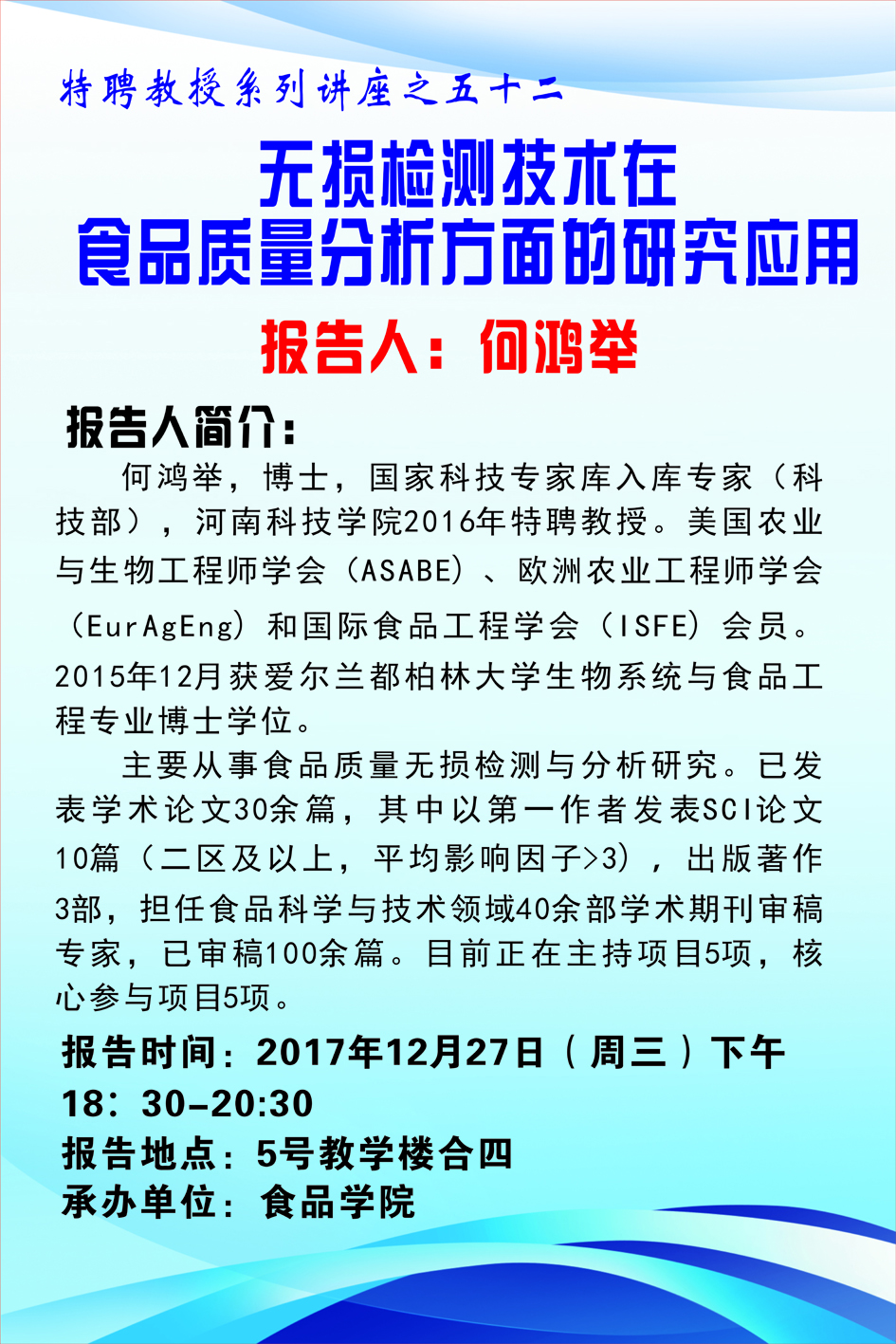 学术报告:无损检测技术在食品质量分析方面的研究应用