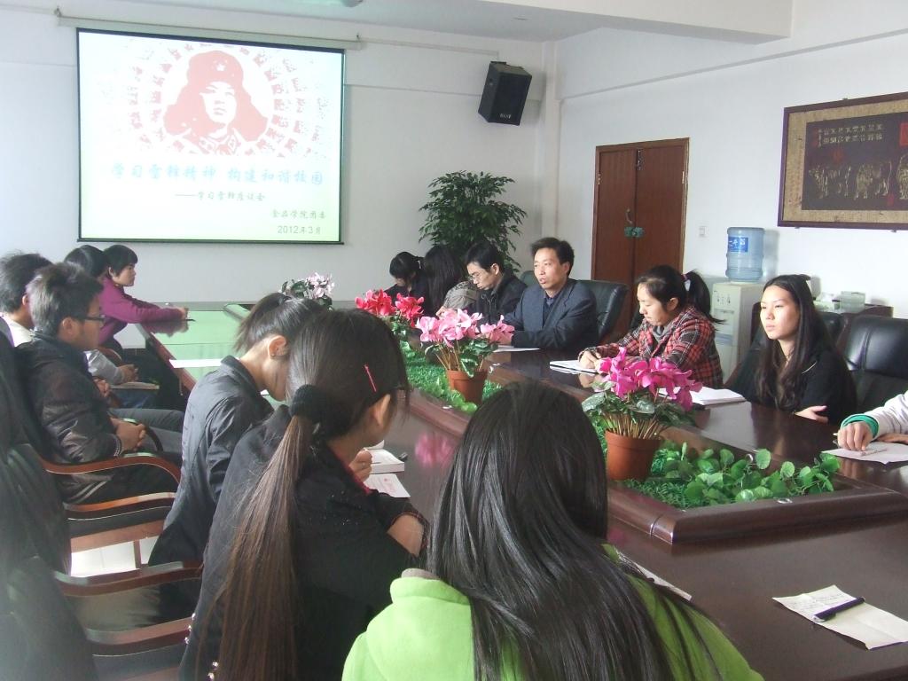 为了广大学生更好的学习雷锋精神,构建和谐校园。3月23日上午8:30,由太阳城网址(中国)官方网站 团委学生会在食品办公楼三楼主办学雷锋座谈会。出席本次 座谈会的嘉宾有太阳城网址(中国)官方网站 党委副书记梵跃峰,团委书记王明艳,辅导员张磊、周浩宇老师以及一些11级的学生。