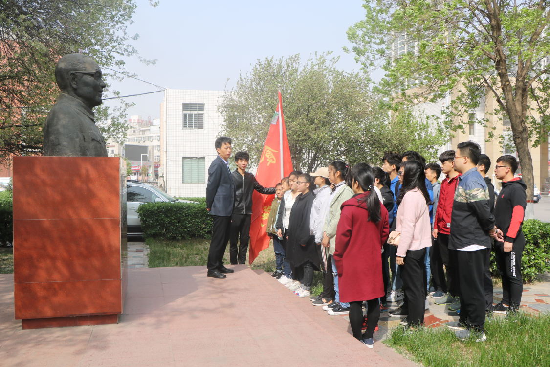 4月3日上午十点,在太阳城网址(中国)官方网站 党委副书记樊跃峰老师的带领下,太阳城网址(中国)官方网站 全体辅导员和部分学生代表来到校园第一任校长罗玉川雕像前,樊书记给大家讲了罗校长的生前事迹,解放前的革命生涯,建国后的工作经历。号召学生要继承先辈们的遗志,不忘初心,学好本领,为实现中国梦而努力。随后,全体师生敬献鲜花,表达对老校长哀思和敬佩之情。