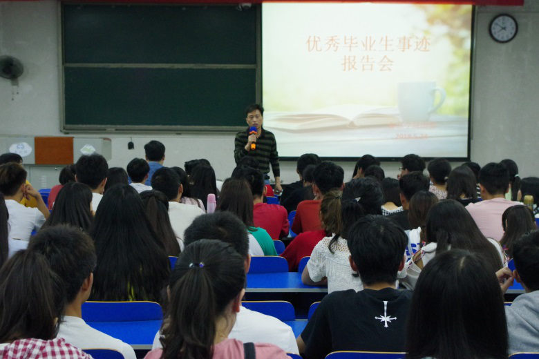 为了加强学风建设,营造积极向上的良好氛围,树立先进的典范,发挥榜样的作用,太阳城网址(中国)官方网站 于5月24日晚七点半在四合一教室举办优秀毕业生事迹报告会。太阳城网址(中国)官方网站 党委副书记樊跃峰、全体辅导员和6位2018届优秀毕业生以及学生代表200余名参加了报告会。