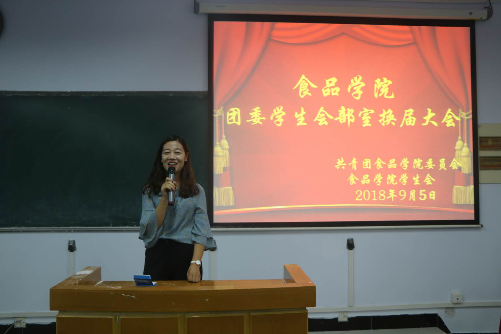 9月5日晚上7:30,我院在6303教室举办团委学生会部室换届竞选大会。院团委书记王明艳,2016级辅导员陈思,2018级辅导员牛李臣,院团委副书记陈金行,学生会主席吕若威、胡亚雪以及学生代表60余人参加了本次竞选大会。