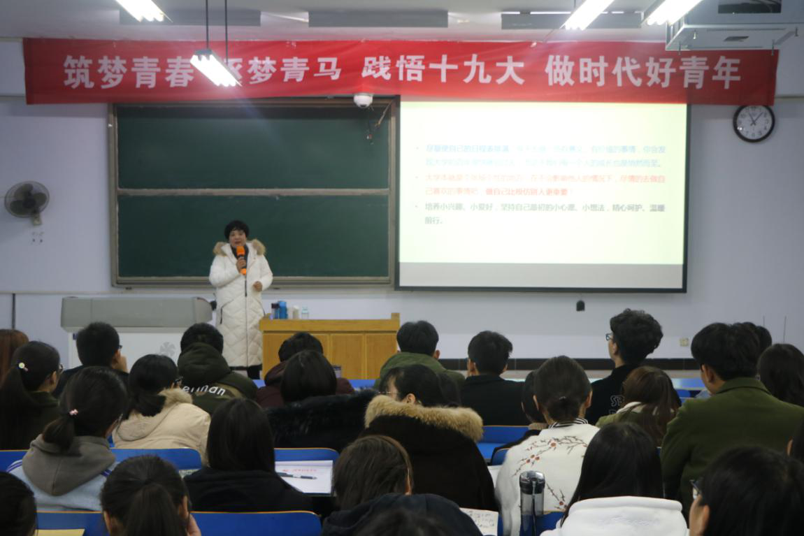 课堂上,刘克平首先告诉在座学生要明确自己的身份和责任,在日常生活中严格要求自己,关心学生服务学生;其次,作为团学干部要积极进取,不断提高自身能力,对自己高标准严要求,要真学习真成长,学好专业知识提高自己的专业能力,肩负起青年一代的历史使命;最后,通过生动的例子,悉心教导大家要有正确的生活态度,体现出当代大学生的精神风貌。互动环节,针对同学们提出的问题一一作答,耐心详细的回答引得同学们的阵阵掌声。
