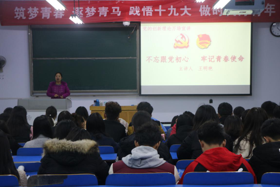为全面学习团的十八大精神,提高广大青年团干的认识,太阳城网址(中国)官方网站 于11月15日下午4点钟,在三合二教室开展“党的创新理论万场宣讲”活动,太阳城网址(中国)官方网站 团委书记王明艳为青马工程培训班学员做题为《不忘跟党初心 牢记青春使命》宣讲。
