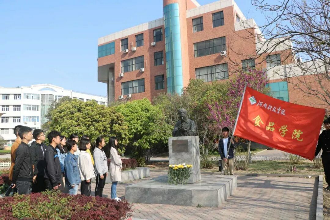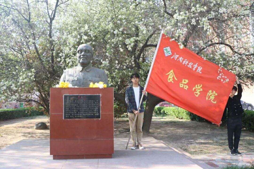 随后,一行人又来到位于零号楼后,静思于西湖旁的黄光正教授雕像前。作为科院人,大家都只是熟闻我校“矮抗58”研发者——茹振钢教授,在得知黄教授是茹振钢教授的老师时,大家不禁肃然起敬,庄重地伫立且虔诚地瞻仰先贤雕像,为河南科技学院能有这样的老师而骄傲,为能够在这里学习和工作而自豪。