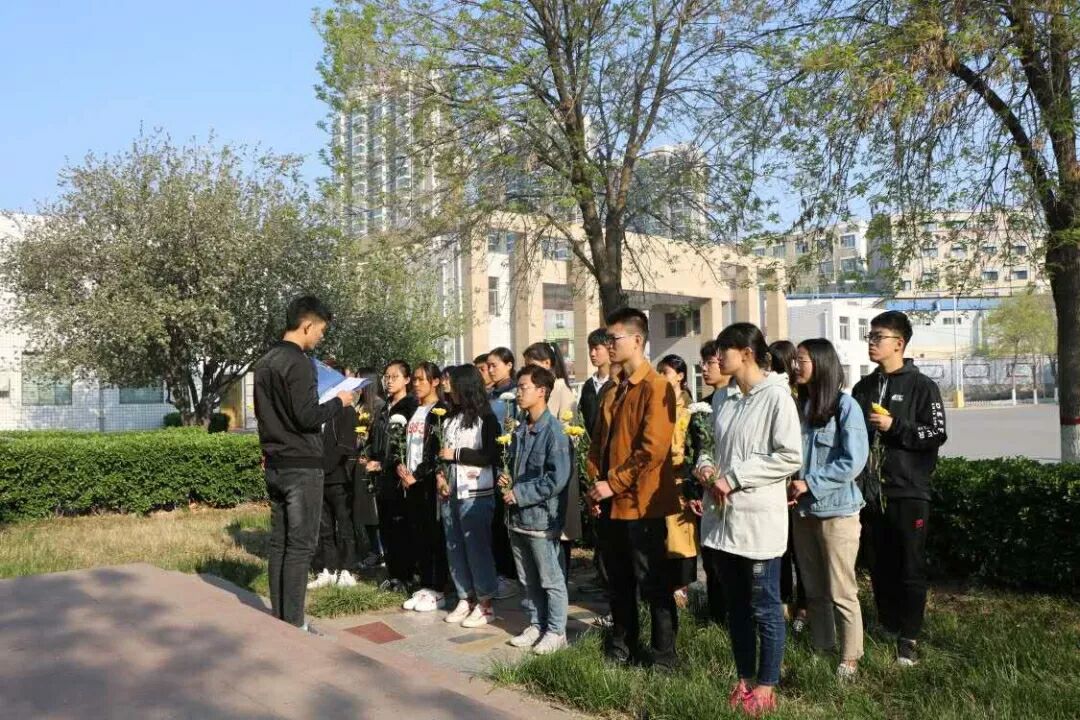 在我校第一任校长罗玉川雕像前,学生代表袁一博向大家详细讲解了罗玉川校长的生平事迹。随后,大家向雕像三鞠躬来表达自己的敬意与哀思,敬献鲜花。