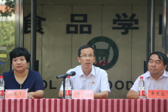 李波对在坐的科院食品新生讲了大学第一课。他围绕“学会学习、学会感恩、学会交往、注意安全、自我约束"等几个方面,给全体新生提出了希望和要求。李波强调,新起点,新征程,全体新生要树立远大志向,珍惜青春年华,努力拼搏进取,让奋斗成为大学四年最绚丽的底色,以实际行动向新中国成立70周年、建校80周年献礼!