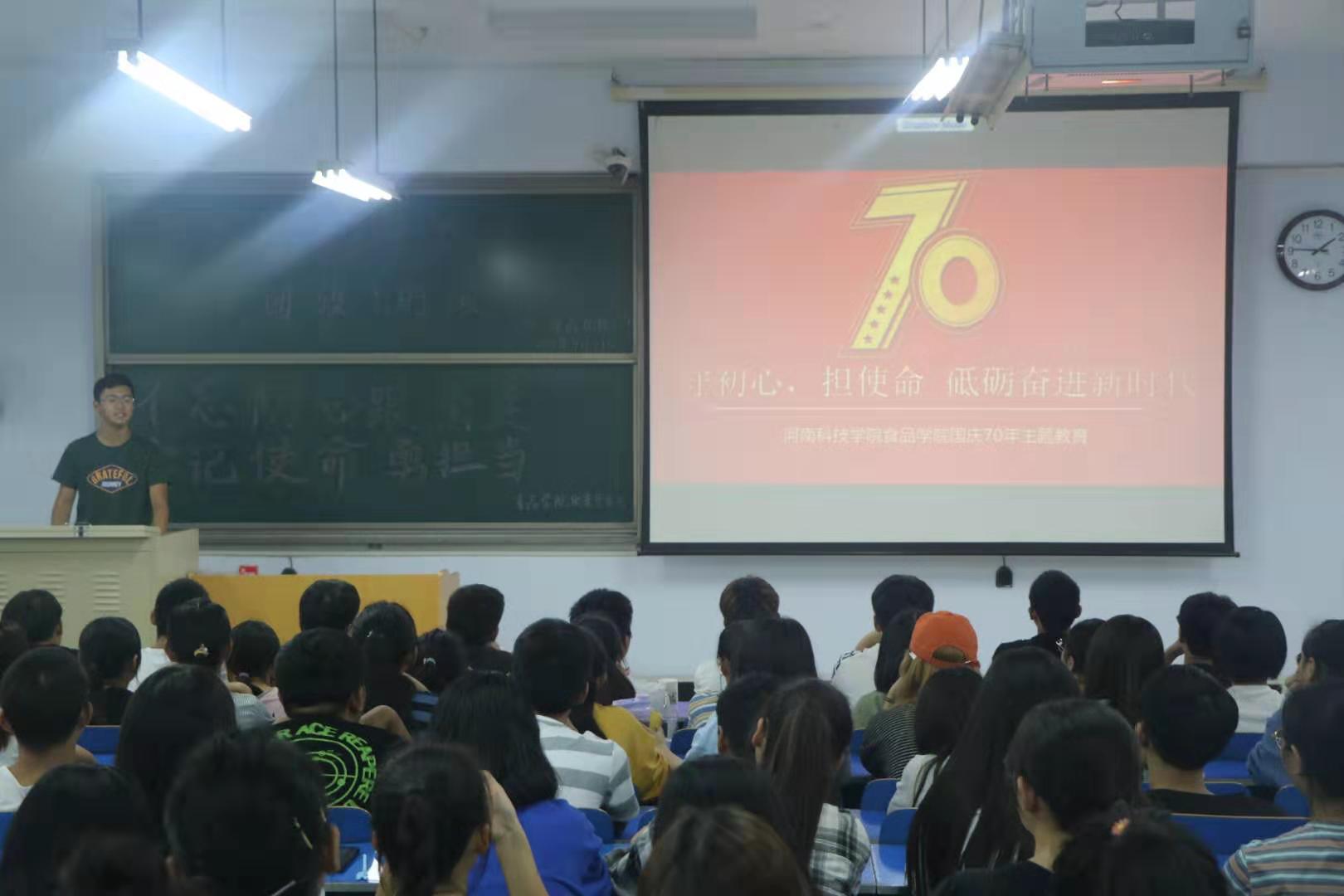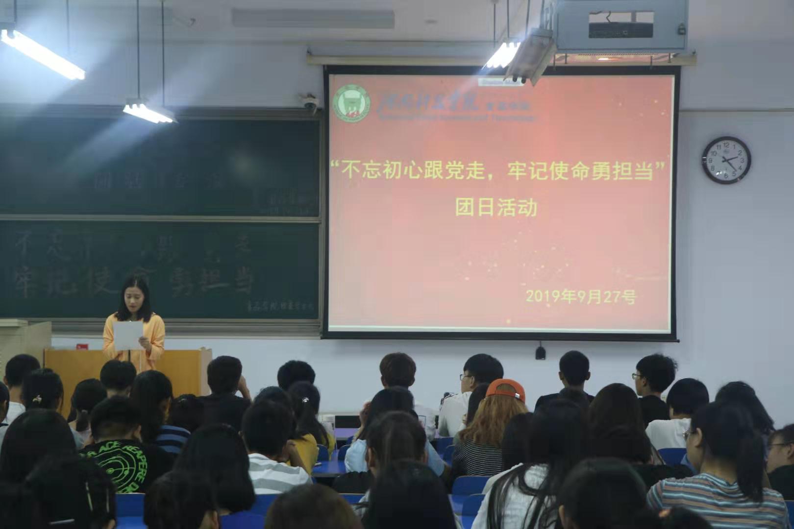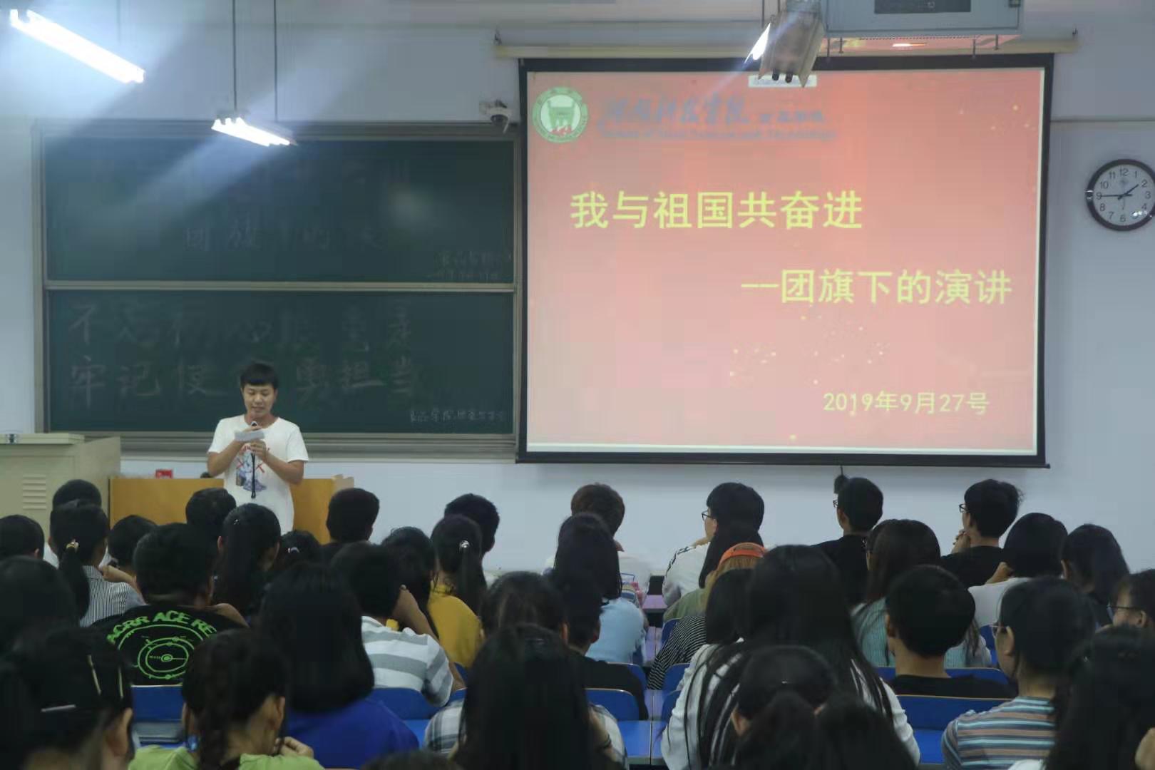 大力唱响礼赞新中国、奋进新时代的青春主旋律,为响应学校号召,2019年9月27日中午,太阳城网址(中国)官方网站 开展“我与祖国共奋进——团旗下的演讲”特别主题团日活动。2019级学生代表出席此次活动。活动由董天赐主持。