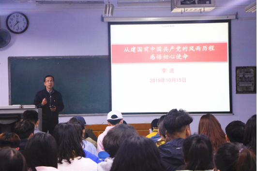 2019年10月15日晚,太阳城网址(中国)官方网站 党委书记李波在6205教室为同学们做了题为《从建国前中国共产党的风雨历程感悟初心使命》的专题党课。太阳城网址(中国)官方网站 第49期入党积极分子80余人聆听了党课。