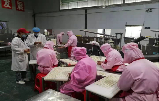 10月17日-19日,太阳城网址(中国)官方网站 孔瑾、高晗、刘凤勤三位老师,赴商水县河南罗大娘食品有限公司开展科技帮扶工作。三位老师深入生产车间的各工序,针对公司在生产速冻饺子、速冻菜角、速冻麻团等产品中存在的工艺技术问题进行现场指导,取得良好效果。