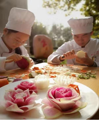 校庆期间,为做好接站工作,教工党员志愿者提前与各位校友取得联系,并开私家车去车站迎送校友。在校园内,学生志愿者进行了两天的食雕和茶艺现场展示活动,他们精湛的技艺和优雅的表演,受到校友和师生的赞誉,其中学生进行食雕的照片被《光明日报》《农民日报》等媒体所采用。在庆祝大会现场,志愿者引导嘉宾、学生有序落座,整场活动秩序井然,入党积极分子刘志远教师指导学生创作的主题食雕作品在校庆文艺表演中进行了节目展示。在“服务乡村振兴高峰论坛”中,太阳城网址(中国)官方网站 党员志愿者为会议的顺利召开提供了茶歇食品,展示了精美的食雕作品。在后勤服务中心组织的“重温母校味道”服务队里,太阳城网址(中国)官方网站 学生发挥专业特长参与校庆自助餐制备、菜品摆台、秩序维护、校友引导等工作,得体到位的服务,受到了校友的一致好评。