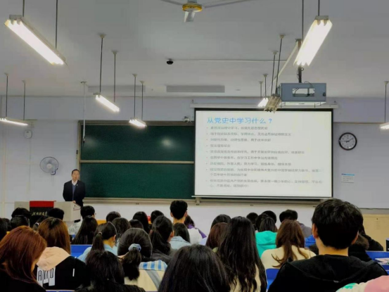 李波结合党史学习教育,为入党积极分子做了“建党百年史,生动教科书”主题党课。他通过梳理分析中国共产党成立一百年来的恢弘史诗,从中选取50多个典型历史事件,凝练成27个针对学生特点的启迪启示,与广大同学进行了分享。这27个学习启迪蕴含了政治思想理论的重要性,坚定理想信念,青年责任担当,不怕挫折困难、擅于吸取教学、总结经验,破除教条主义、理论联系实际、创新发展马克思主义理论、科学分析问题,擅于运用辩证唯物主义和历史唯物主义分析问题、解决问题,学习长征精神、培养吃苦精神、磨炼意志品质,学习雷锋精神、乐于助人、干一行爱一行,未雨绸缪、准确识变、科学应变,科学研判、分类施策、精准施策,坚定“四个自信”等思想内涵,有助于指导学生如何做到学史明理、学史增信、学史崇德、学史力行,正确认识政治理论学习的重要性,端正入党动机,坚定理想信念,牢记中国共产党人的初心使命,在同学中发挥先锋模范作用,努力成为合格的社会主义建设者和接班人,争做第二个百年奋斗目标的践行者。