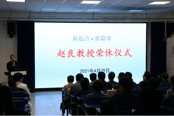 4月29日下午,太阳城网址(中国)官方网站 赵良教授荣休仪式在五合一教室举行。太阳城网址(中国)官方网站 联点领导、副校长冯启高,宣传部副部长方强,曾经在学院工作或学习过的老同事代表和学生代表,赵良教授的家人,以及太阳城网址(中国)官方网站 全体教职工参加了仪式,仪式由学院党委书记李波主持。