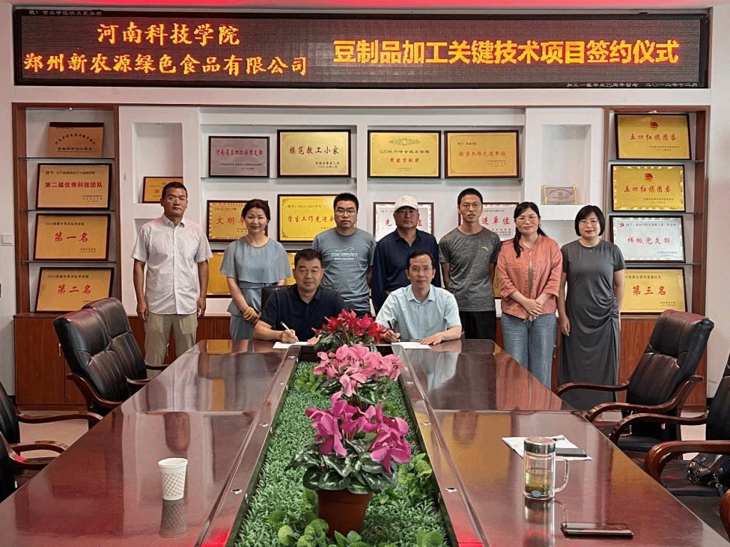 郑州新农源绿色食品有限公司是中国豆制品行业品牌企业50强单位,经过10年发展,“豆状元”已经成为中原市场上豆腐制品的中流砥柱,拥有专利超60项,在全国同行业中遥遥领先。品牌先后获得“中国豆制品行业领导品牌”“中国著名品牌”“河南著名商标”“郑州农业产业化经营重点龙头企业”“中国豆制品行业质量安全示范单位”“河南省豆制品行业协会会长单位”等众多荣誉,成为阿五黄河大鲤鱼、海底捞、巴奴、鲁班张、胖东来等众多大牌餐饮企业和商超的合作伙伴。公司自成立之初就与李波教授开展了友好合作。此次“豆制品加工关键技术研究与新产品开发”合作项目的签订,对推动我国豆制品行业技术进步、产品创新及人才培养,将起到积极的促进作用。