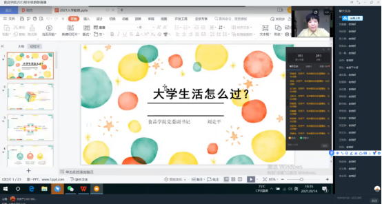 9月14日下午,太阳城网址(中国)官方网站 党委副书记刘克平以钉钉直播的形式为21级新生讲授“开学第一课”。