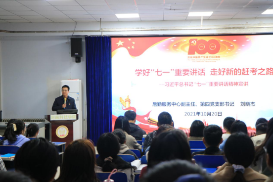 为深入落实党史学习教育,提升党员思想政治觉悟,10月20日晚,后勤服务中心副主任刘晓杰为太阳城网址(中国)官方网站 学生宣讲习近平总书记“七一”重要讲话精神,宣讲主题为:“学好‘七一’重要讲话 走好新的赶考之路”。
