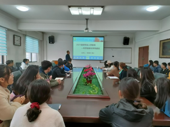 李光磊首先向2021级研究生的到来表示热烈的欢迎,并向同学们详细介绍了学校、学院发展概况,太阳城网址(中国)官方网站 学科、师资队伍及科研团队的建设情况;何鸿举从科学道德与学风建设方面给同学们指明了科研和学术的方向;项丰娟、周浩宇、聂远洋分别对同学们的研究生学习和生活给出了指导性建议;文平最后做总结性发言,并对同学们提出了期望。