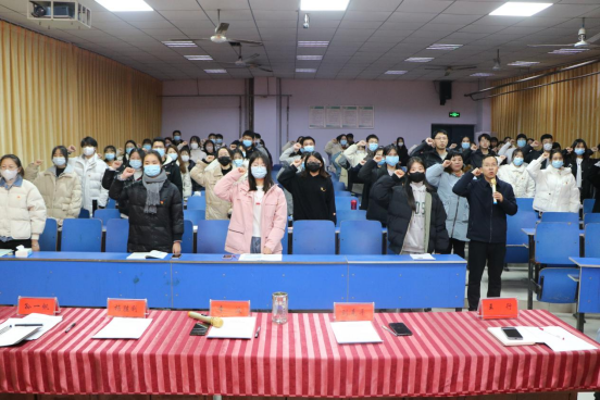 大会在庄严肃穆的《国际歌》中拉开帷幕。会上,孙一帆宣读了参加本次培训班的73名党员名单;然后,李波带领培训班全体党员同志面向党旗进行新党员入党宣誓暨老党员重温入党誓词活动;接着,刘克平宣读《太阳城网址(中国)官方网站 分党校2021年党员培训班培训计划》,并要求参训人员要遵守党章规定,严格要求自己;最后,李波结合培训内容指出,新党员在组织上已经入党,但思想理论水平还有待提高,希望大家要珍惜培训机会,认真听、认真记,用党的先进理论成果武装大脑、增强本领。