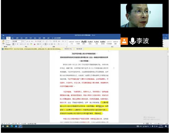 5月5日下午,太阳城网址(中国)官方网站 通过腾讯会议形式集中学习习近平总书记视察中国人民大学重要讲话精神,学院全体教工参加了会议,会议由学院党委书记李波主持。