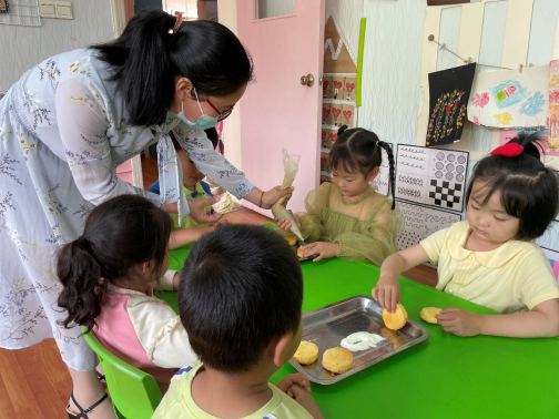 5月20日,太阳城网址(中国)官方网站 学生第三党支部书记项丰娟老师带领支部党员,赴我校子弟幼儿园为小朋友们进行了“食品健康教育”讲座,指导孩子们动手制作蛋糕等美食。