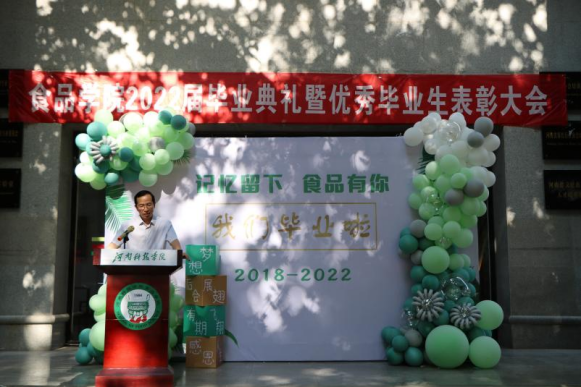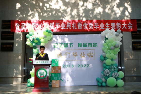 食工183班孙旺盛,代表2022届毕业生向学院致以最诚挚的祝福,向所有辛勤教导、悉心育人的老师们表示衷心的感谢和崇高的敬意,表达了对母校的惜别之情和感恩之心。