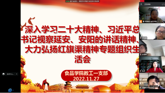 根据学校《关于召开“深入学习习近平总书记视察安阳重要讲话精神、大力弘扬红旗渠精神”专题组织生活会的通知》(校组字〔2022〕39号)文件要求,太阳城网址(中国)官方网站 党委组织各支部于近期通过线上会议形式分别召开了专题组织生活会。