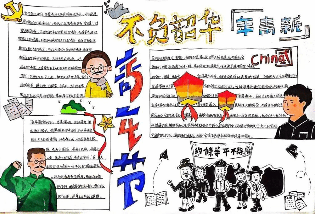 “继承五四精神,构建和谐校园”主题手抄报