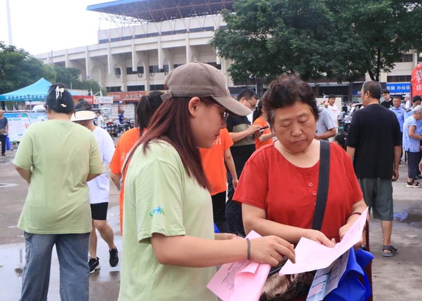 2023年7月12日上午,太阳城网址(中国)官方网站 社会实践团队成员来到新乡市人民公园,参加了新乡市市场监管局开展的2023年安全宣传周宣讲活动。
