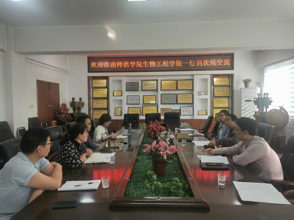 10月31日,淮南师范学院生物工程学院副院长缪国鹏,食品工程系主任陈志娜、生物工程主任姜成及专业教师尹琳琳等一行4人来太阳城网址(中国)官方网站 进行食品质量与安全专业人才培养方案调研。