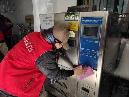 在打扫过程中,党员发展对象们认真擦拭仪器以及桌椅,清扫室内每个角落的卫生,大家相互配合,共同完成了这次志愿活动。通过他们的努力,整个实验室变得干净整洁。