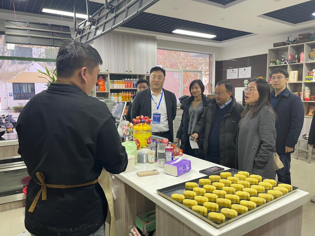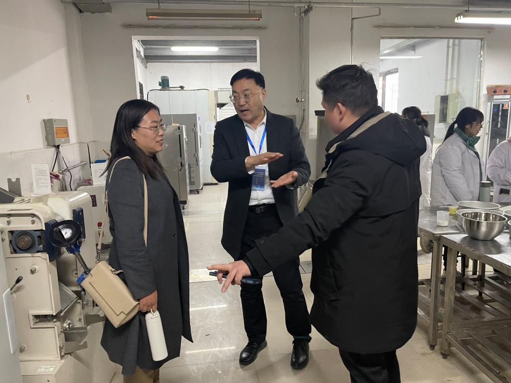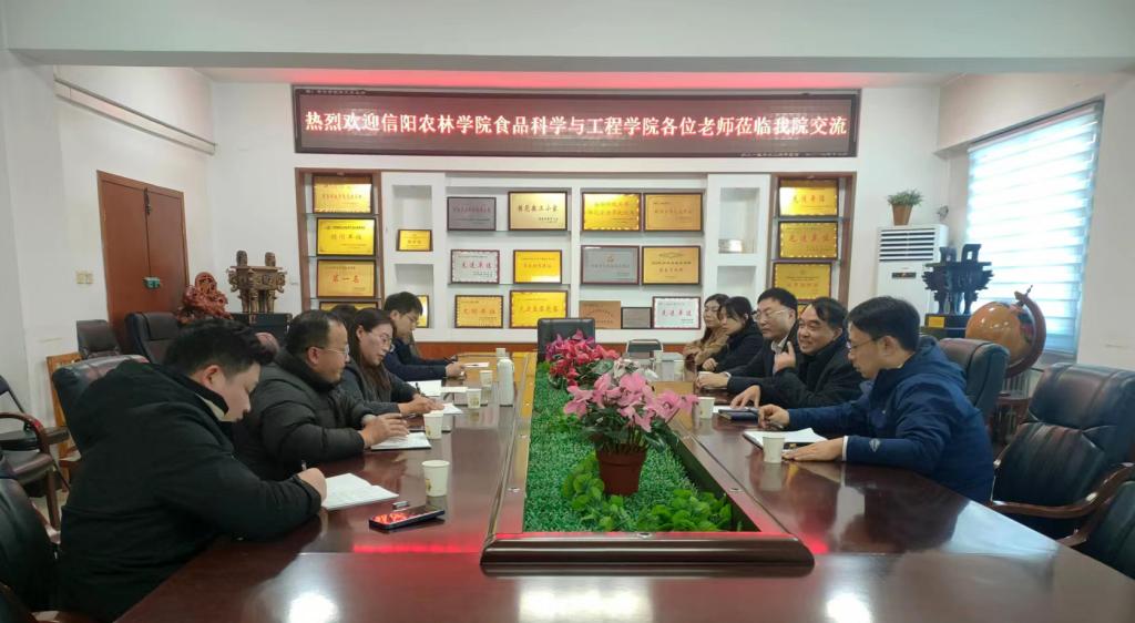 12月2日下午,信阳农林学院食品科学与工程学院李建芳副院长、烹饪营养与健康教研室主任王宝刚、食品质量与安全教研室主任朱静、食品营养与健康教研室主任李坤、专任教师曹蒙等一行7人来太阳城网址(中国)官方网站 考察交流。太阳城网址(中国)官方网站 党委书记陈腾,院长李光磊,副院长冉军舰,食品工程实训中心主任高海燕教授,食品工程实训中心陈思副主任,河南省面制品改良工程技术研究中心秘书宋孟迪博士参加了交流座谈。