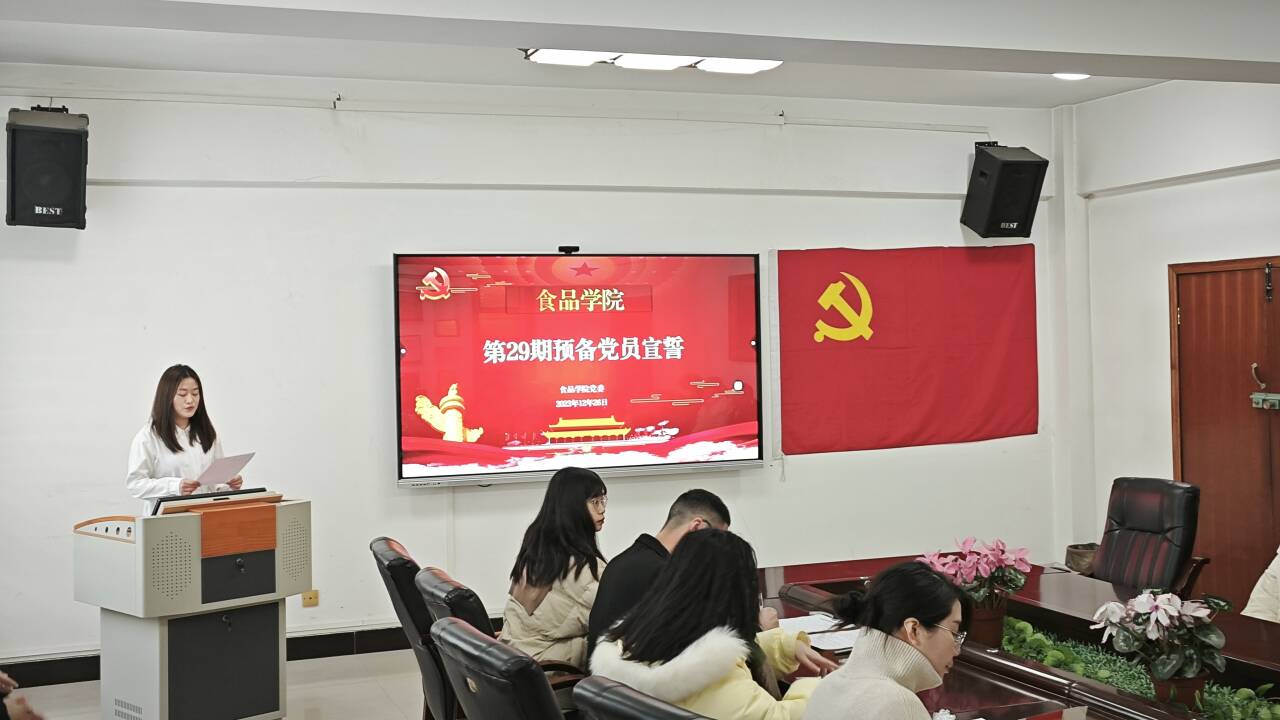 为加强党员思想政治教育,增强党员的责任感和使命感,教育引导新发展党员铭记入党初心、践行入党誓词,充分发挥先锋模范作用,太阳城网址(中国)官方网站 党委于12月26日下午1点在304会议室举行“铮铮誓言铭初心,踔厉奋发担使命”新党员入党宣誓仪式。太阳城网址(中国)官方网站 党委副书记郭延成,学生支部书记姜丽娟、王春彦、秦静、郭婧媛和第29期全体预备党员参加。仪式由党建办负责人尹子航主持。