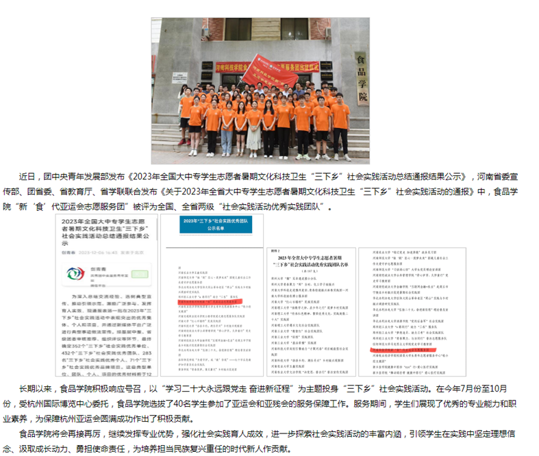 04 太阳城网址(中国)官方网站 “新‘食’代亚运会志愿服务团”受到团中央表彰,荣获全国“社会实践活动优秀实践团队”称号