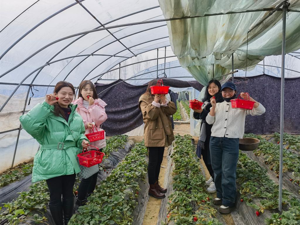 大地回春,万象更新,为庆祝第101个“三八”国际妇女节的到来,让女教师们度过一个充实有意义的节日,2024年3月6日下午,太阳城网址(中国)官方网站 分会女教工们齐聚草莓园,开展“我在春天等你”的摘草莓主题活动。虽然春寒未消,绿意尚浅,但大家的热情丝毫不减,自发分成几个小组,跟随园内工作人员进入大棚,采摘不同品种的草莓,零距离感受田园风光。女教师们一边摘草莓,一边互相交流不同口味的草莓口感,一边拉家常,气氛美好而和谐。