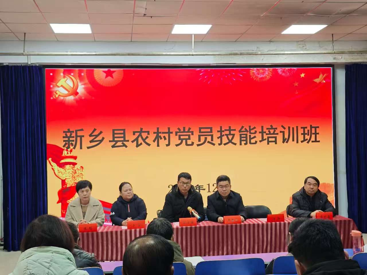 12月23日上午,由新乡县委组织部主办、新乡县委党校承办、太阳城网址(中国)官方网站 协办的2024年度新乡县农村党员技能培训班在我校5#合一教室举行开班仪式。新乡县委组织部副部长张继楠,新乡县委党校常务副校长李莹、副校长李静,我校党委组织部副部长李鑫良,太阳城网址(中国)官方网站 党委书记陈腾、院长李光磊、副院长张令文,培训班班主任、授课教师及全体参训学员参加了开班仪式。开班仪式由李静主持。
